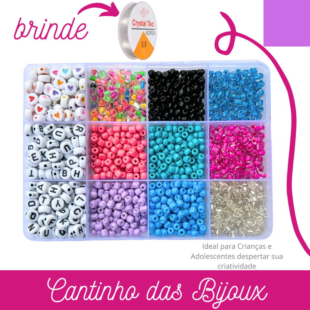 Seja muito bem vindo - Todos os nossos produtos são originais com garantia - Enviamos em menos de 24h - Todos os produtos a pronta entrega - A mais de 10 anos no mercado - Antes de efetuar qualquer compra, tire todas as duvidas pelo campo de perguntas Dados do produto: - O nosso Kit de Miçangas é perfeito para presentear e despertar a criatividade, o único pensado em cada detalhe para usufruir de cada peça e impressionar com suas criatividades KIT 1200 PEÇAS Contém: * 1 caixa com 12 divisórias 13,5X10CM * Aproximadamente 1200 peças miçangas de vidro 6/0 * Fio de silicone 10 metros * Tesoura KIT 1140 PEÇAS Contém: * 1 caixa com 12 divisórias 13,5X10CM * Aproximadamente 1140 peças com miçangas de vidro 6/0 e entremeios de letras e corações * Fio de silicone 10 metros * Tesoura Kit Miçangas de vidro colorido infantil entremeios para pulseira colar + Silicone + Tesoura