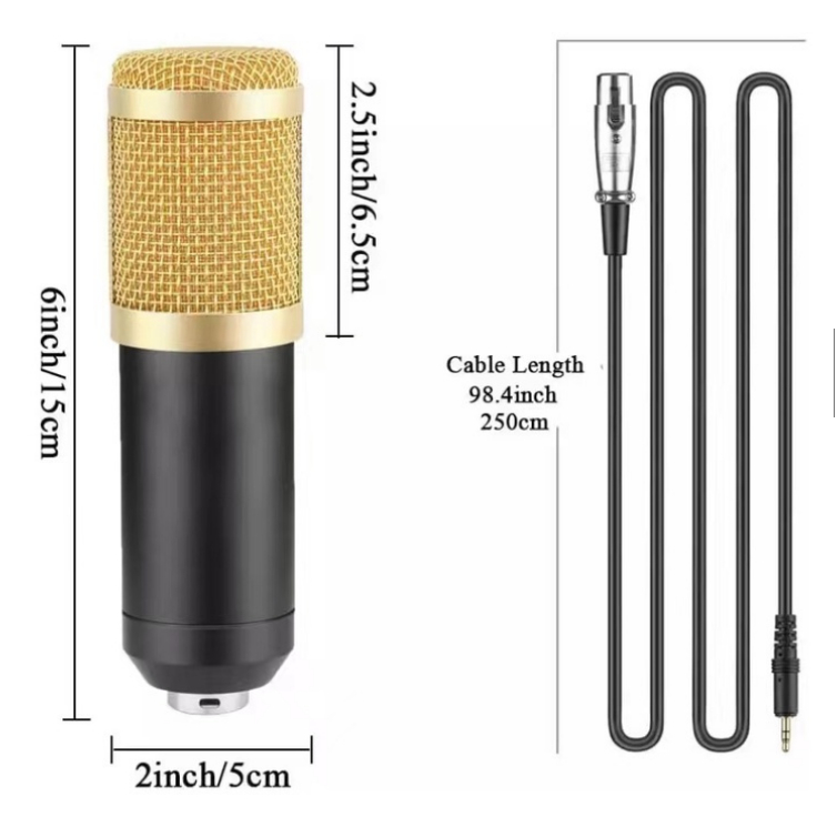 Descrição Tipo: Condensador de alto desempenho Tamanho do diafragma: 34mm Padrao polar: Unidirecional Resposta de frequencia: 20Hz 20Khz Sensibilidade:-34db 2db Impedancia de saida: 150 30% Impedancia de carga: 1000 Nivel de ruido equivalente: 16db Max nivel de pressao sonora: 132db Relação sinal ruido: 78db Consumo de corrente: 3mA Dimensões do microfone: 46 x 150 mm Comprimento do cabo: 2,50m Itens inclusos: Microfone condensador Cabo XLR/P2 Espuma Pop Filter Clipe de fixação Shock Mount Braço articulado