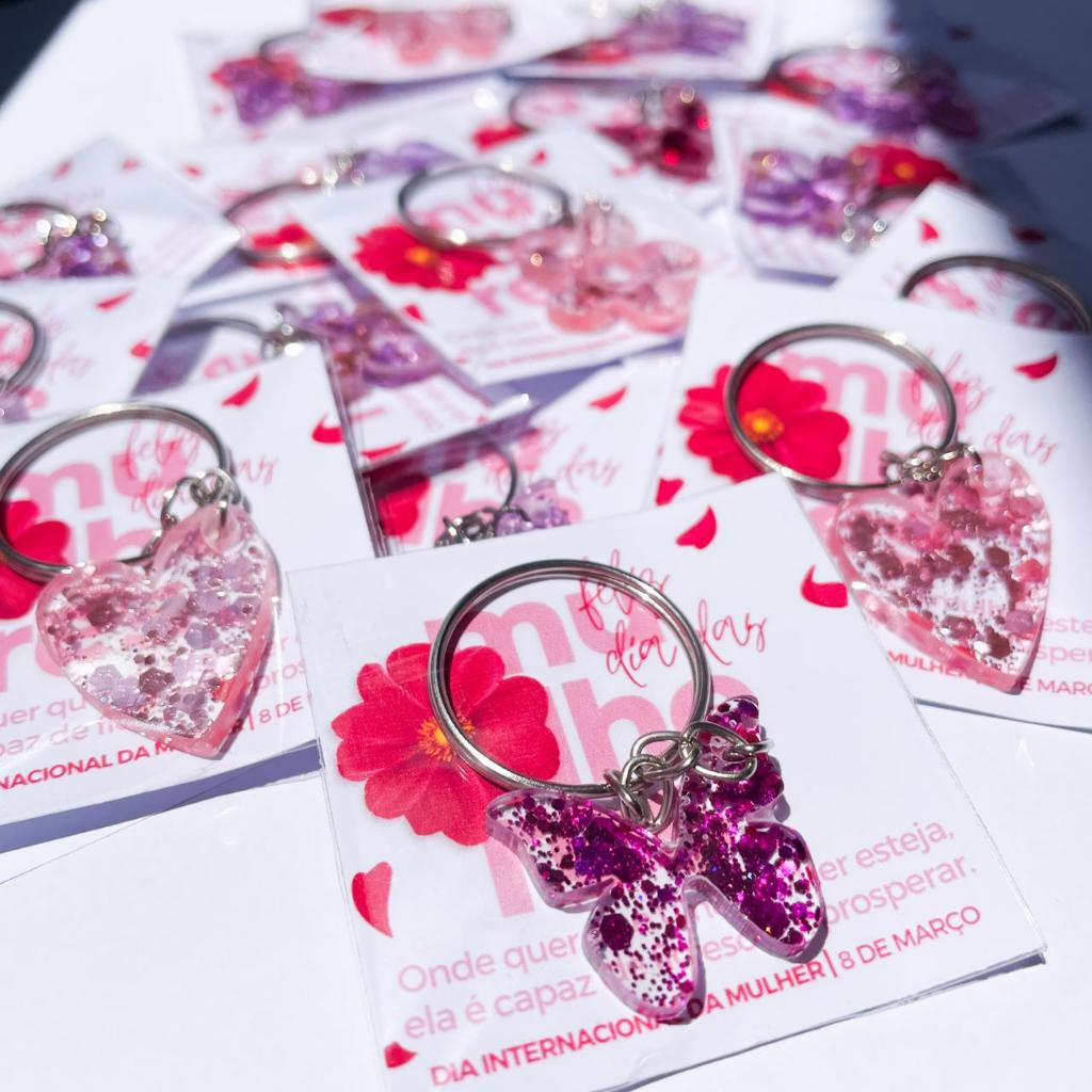 ✨ SURPREENDA NESTE DIA DAS MULHERES COM UM MIMO EXCLUSIVO! ✨ O Dia das Mulheres é a oportunidade perfeita para fidelizar suas clientes e parceiras. Nossos chaveiros artesanais em resina são mimos de luxo, delicados e cheios de significado. ✅ DIFERENCIAIS DO NOSSO KI T: K it Completo: Chaveiro em Resina + Card com Mensagem + Embalagem Individual. Formatos Sortidos: O kit contém Flores (Renovação), Borboletas (Transformação) e Corações (Amor). Alta Durabilidade: Resina premium que não perde o brilho e resiste ao tempo. 🎨 COMO PERSONALIZAR? Realize a sua compra. Imediatamente após o pagamento, nos chame no chat. Escolha até 2 cores por kit (temos diversas opções de cores e glitters!). Caso não entre em contato em até 24h, enviaremos cores sortidas de acordo com nosso estoque para garantir o prazo de envio. 📦 CONTEÚDO DO PACOTE: disponíveis em: 10, 20 ou 40 unidades (selecione na variação). Chaveiros montados com argola de alta qualidade. Acompanha cartões com frases inspiradoras para o Dia das Mulheres. ⚠️ INFORMAÇÕES IMPORTANTES: Prazo de Produção: Por ser um produto 100% artesanal, respeitamos o prazo de pré-encomenda indicado no anúncio. Modelos: Não é possível escolher apenas um formato (enviamos o mix de flor, borboleta e coração). 💡 IDEAL PARA: Brindes corporativos, mimos para clientes de lojas de roupas, estética, salões de beleza, confeitarias e eventos em geral. lembrancinha feminina, brinde empresa dia das mulheres, mimo cliente atacado, chaveiro personalizado resina