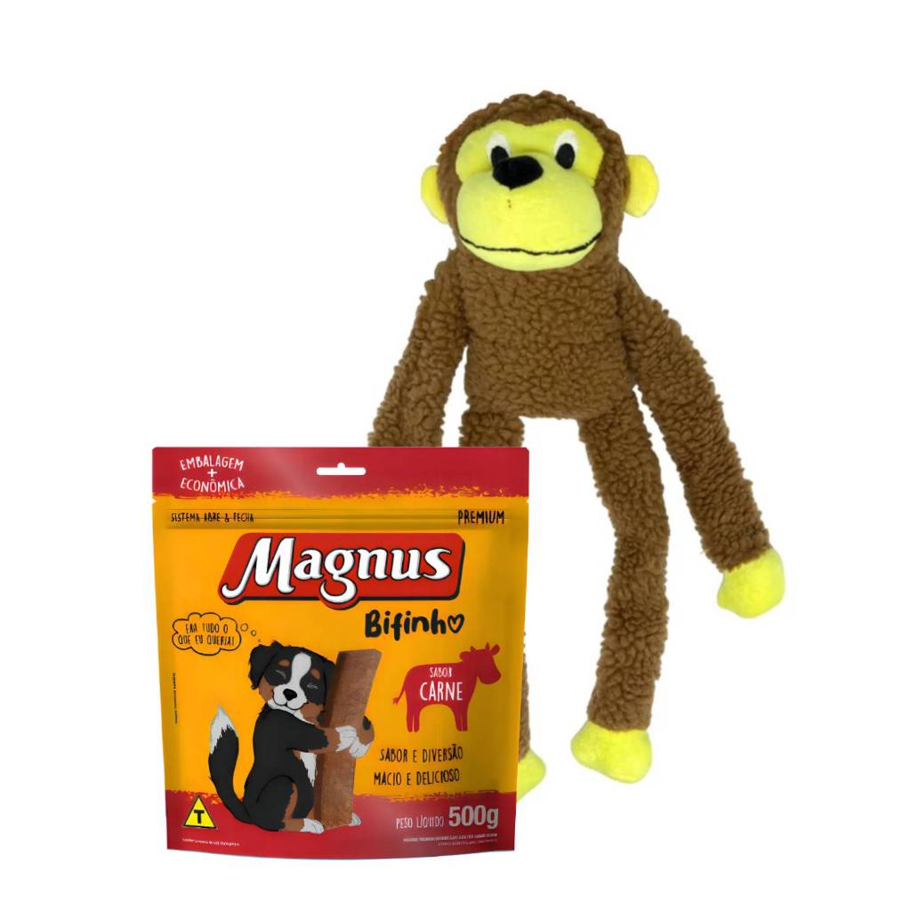 Kit Mimo p/ Cachorros Petisco Magnus + Pelúcia Macaco/Sapo Bob