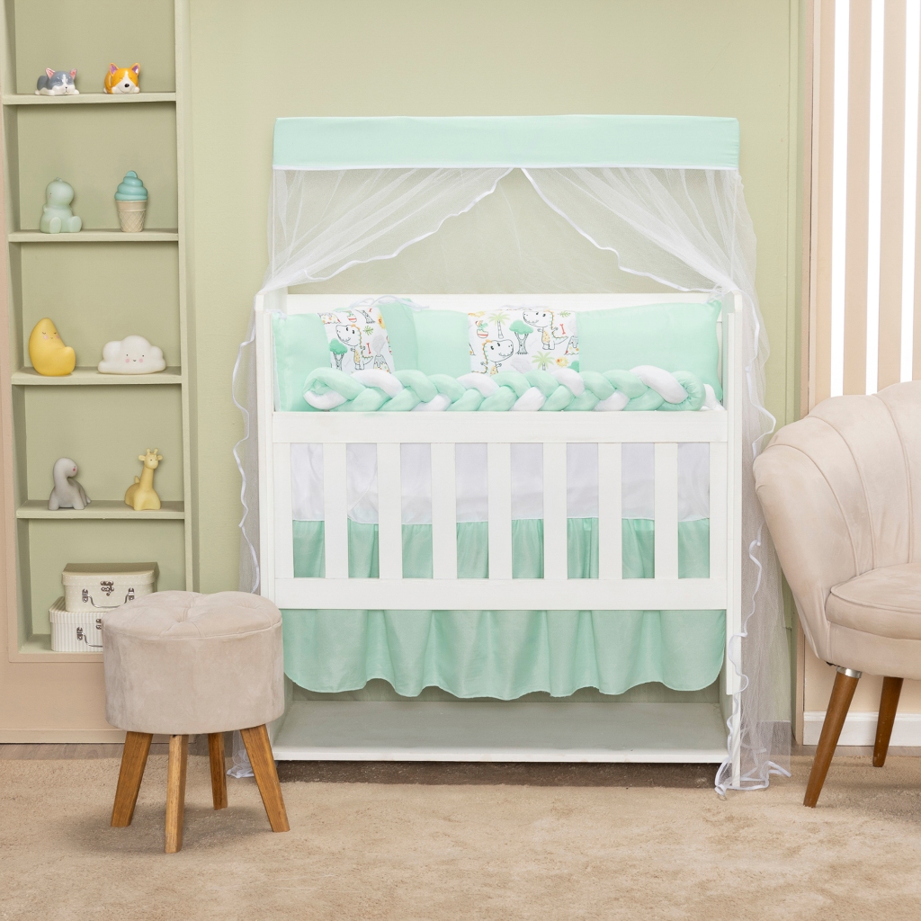 Kit Mini Berço 6 Peças Para Bebê Menino Menina Trança Mini Berço Poliéster Protetor Enxoval