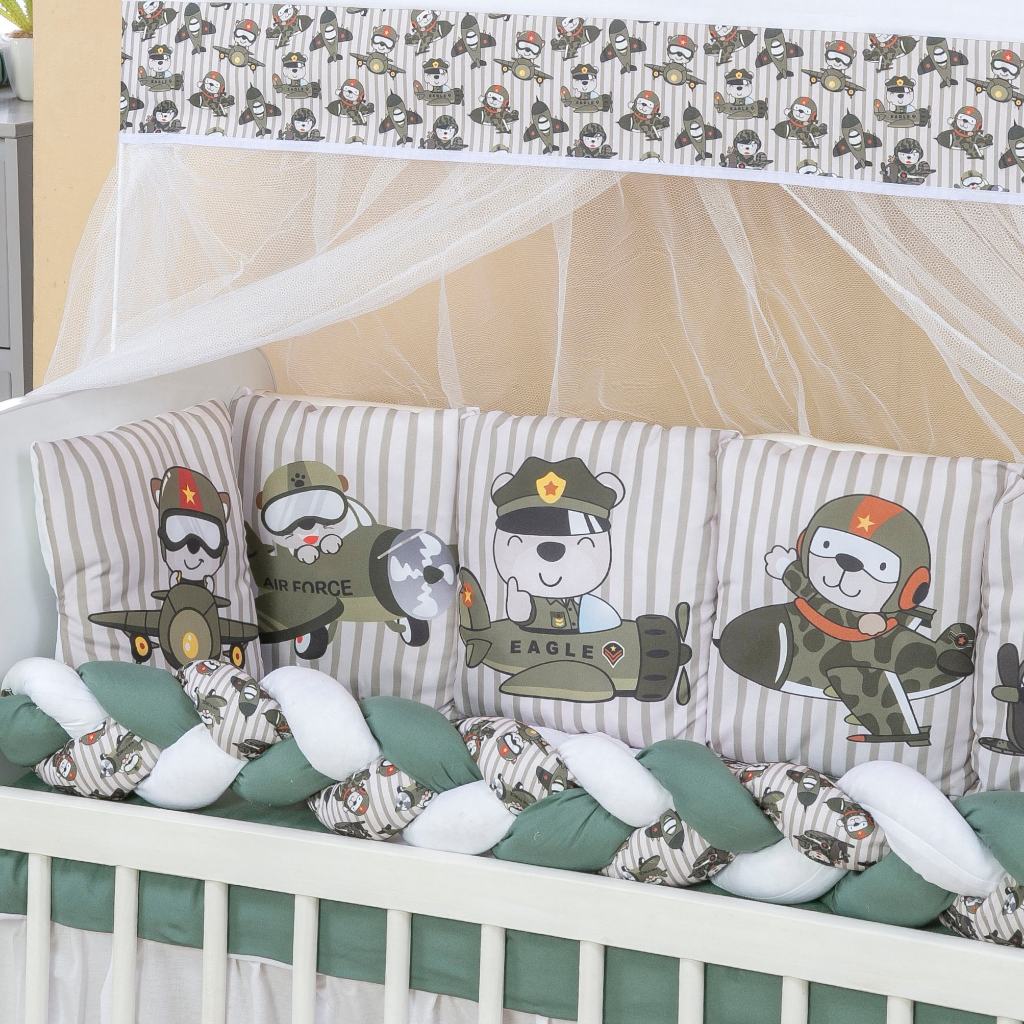 KIT INDICADO PARA MINI BERÇO - PARA TAMANHO PADRÃO AMERICANO E NACIONAL CONSULTAR CHAT Transforme o cantinho do seu bebê em um verdadeiro ninho de aconchego com o nosso Kit Mini Berço! Ideal para recém-nascidos, esse conjunto é perfeito para quem busca qualidade, segurança e delicadeza nos primeiros meses de vida do bebê. Contém 1 Cabeceira 27 cm x 27 cm 4 Almofadas Laterais 27 cm x 27 cm 1 Trança Lateral 90 cm X 12 cm 1 Edredom 95 cm x 53 cm 1 Lençol de Cima 90 cm x 60cm 1 Lençol de Baixo 88 cm x 38 cm 1 Fronha 35 cm x 28cm 1 Bando 90 cm x 15 cm 1 Mosquiteiro92 cm x 1,50 cm 1 Saia de Berço 88 cm x 30 cm Tecido - 100% Micro Percal Enchimento - 100% Poliéster Tule - 100% Poliamida