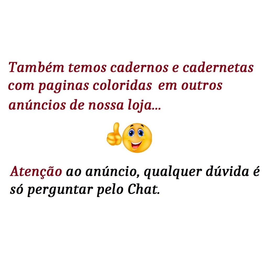 Lindas Cadernetas Blocos com espiral com folhas coloridas. Kit com cor única ou cores sortidas (serão enviadas cores variadas sem escolha); Cada Caderneta possui 40 folhas, sem pauta (sem linhas) Capa em plástico maleável nas cores disponíveis no anúncio, Capa Rosa com folhas cor de rosa; Capa Amarela com folhas amarelas; Capa Azul com folhas azuis, Capa Preta com folhas Brancas; Capa Transparente com folhas brancas; Capa Verde com folhas verdes; Capa Vermelha folhas Rosa; Tamanho Aproximado, podendo variar pois são produtos artesanais: Pequeno : 9,5 cm x 7,0 cm Prazo máximo para envio 5 dias úteis, tempo médio de envio 4 dias úteis ( não são contados sábado, domingos e feriados.
