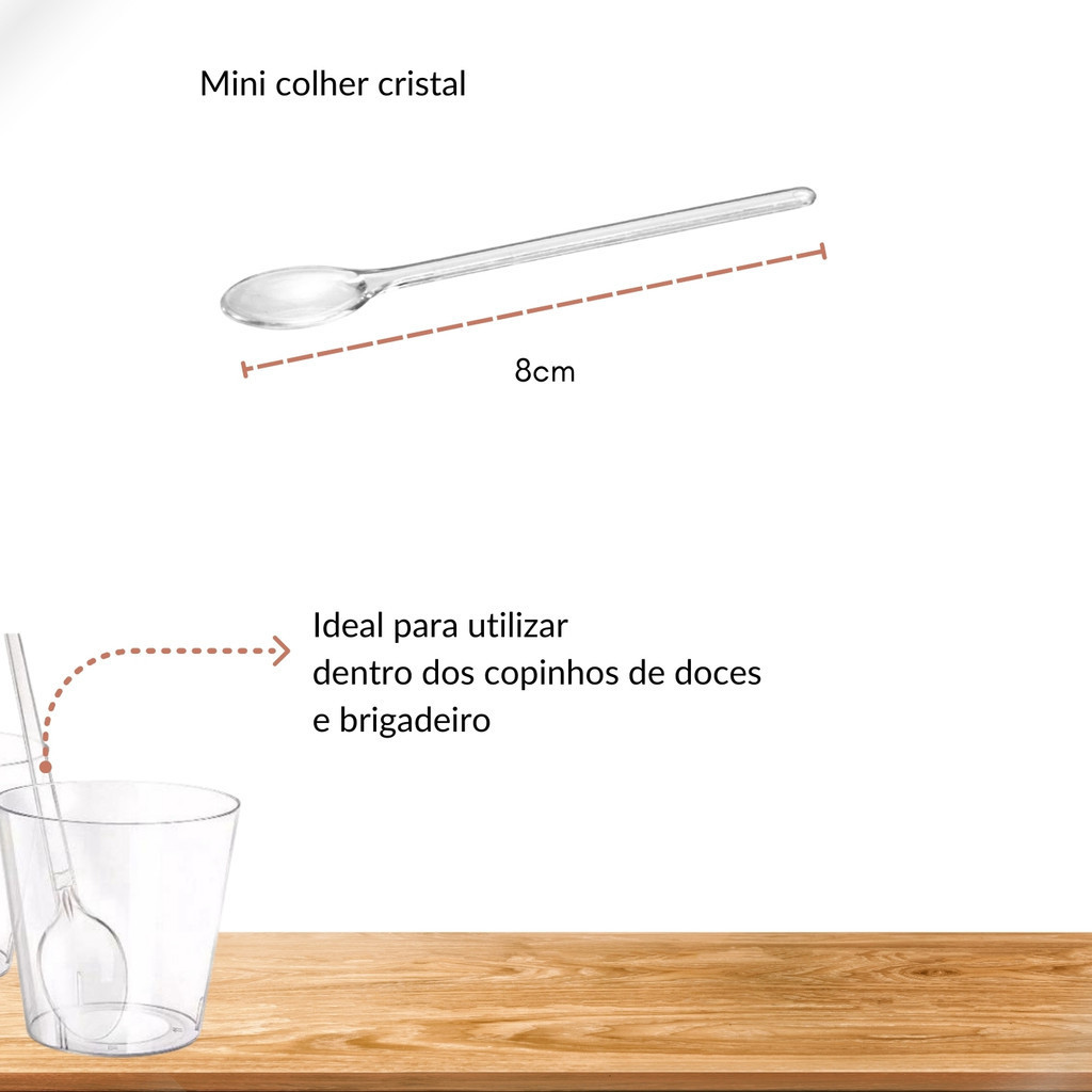 Kit Mini Colher Cristal para Brigadeiro Doces 200 a 600un. Descartável Festa Decoração Aniversário