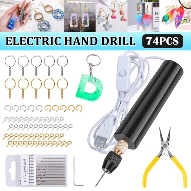 Kit Mini Furadeira Broca Elétrica De Resina USB Mini Manual Portátil Kit De Fabricação De Chaveiros Para Jóias De Resina Epóxi Pérola Fazendo Bricolagem Furadeira elétrica artesanato Biscuit+acessórios