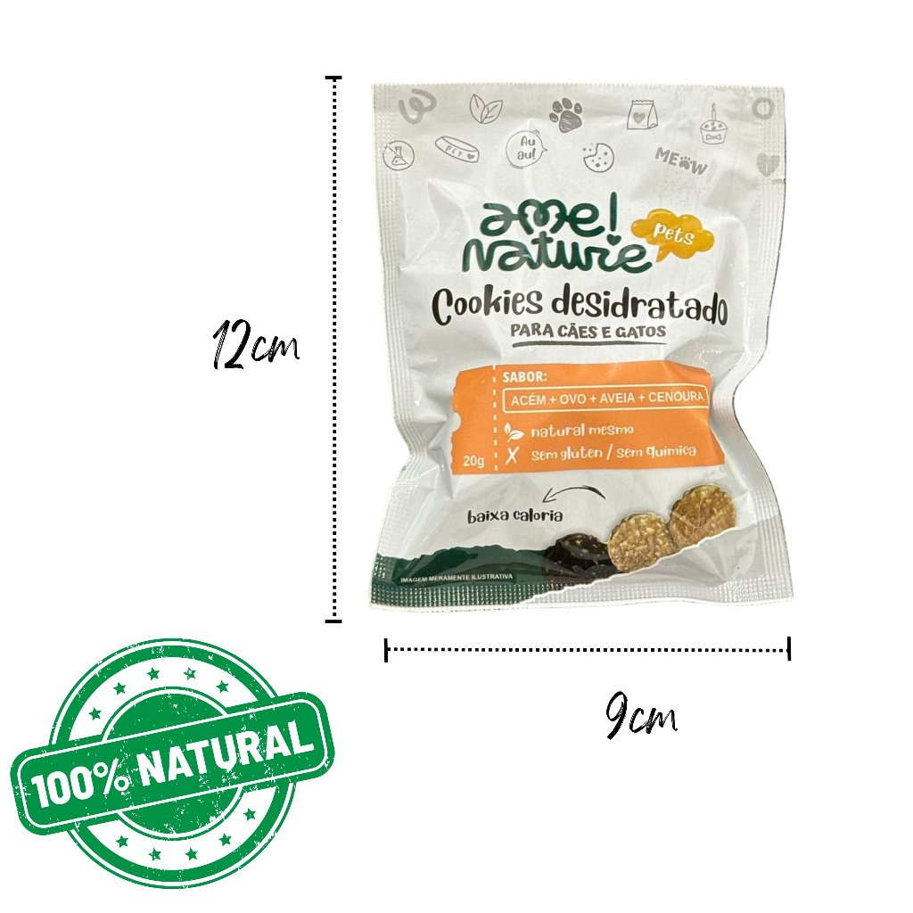 Kit Degustação Mini Cookies Naturais p/ Cães e Gatos – 3 Sabores (60g) O Kit Mini Cookies 100% Naturais da Ame Nature é perfeito para o seu pet experimentar diferentes sabores e aproveitar petiscos saudáveis, crocantes e feitos apenas com ingredientes de verdade. ✨ Sabores inclusos (3x20g): Fígado de frango + aveia + arroz Desidratado Acém Bovino + cenoura + ovos + aveia Desidratado Mandioca + aveia + banha saína Desidratado (hipoalergênico) 📌 Características do Produto: Testado e aprovado por Nutróloga Veterinária Peso: 20g cada pacote (total 60g) Tamanho médio: 2,5 cm de diâmetro Textura crocante (desidratado, não frito) 🐾 Benefícios dos nossos Cookies Naturais: ✔️ 100% Natural – sem conservantes, corantes ou aromatizantes ✔️ Sem glúten e sem trigo – mais seguro para pets sensíveis ✔️ Ingredientes reais, frescos e selecionados ✔️ Produção artesanal com qualidade e cuidado ✔️ Longa durabilidade devido à desidratação e embalagem laminada 📦 Armazenamento: Mantenha em local seco e fresco, longe da luz direta. Validade de 12 meses apos a data de fabricação 👉 Ideal para cães e gatos de todos os portes e idades!