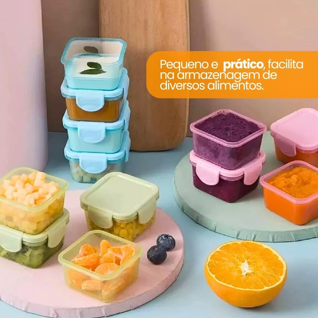 Kit Mini Potes para Congelar Papinha c/ Tampa Hermética Porta Leita em pó Frutas para Bebe adultos