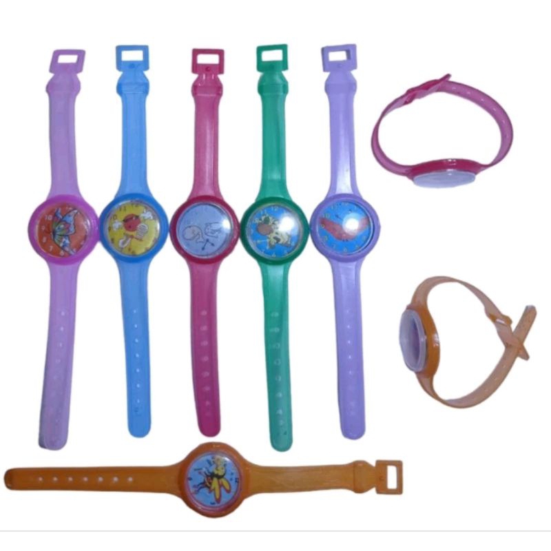 35 Rélogios, cores sortidas - Comprimento total 17 cm. Obs. Relógio não funciona, apenas usado como brinquedo. Envio imediato, ficamos à disposição.