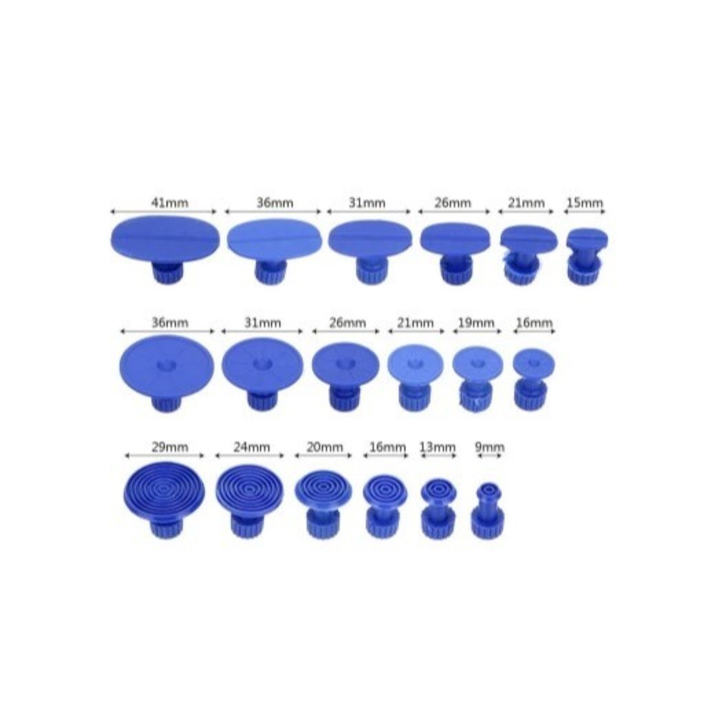 Descrição do Produto Kit 100% novo e de alta qualidade, ideal para reparo de amassados automotivos sem pintura (PDR). Fabricado em liga de alumínio, oferecendo alta resistência, durabilidade e excelente desempenho durante o uso. Utilizado como adaptador para martelo deslizante ou sistema de tração, facilitando a puxada e correção de amassados na lataria. Produto essencial para reparo de danos, com substituição direta de peças danificadas. Instalação simples e prática, com rosca padrão M10, garantindo ampla compatibilidade. Especificações Material: Liga de alumínio Cor: Conforme imagens Tipo de rosca: M10 Tamanho: Conforme imagens Conteúdo da Embalagem 1x Martelo deslizante 18x Abas (pastilhas) de tração azuis (tamanhos variados) Modo de Uso Limpe a área amassada com um pano limpo e seco. Insira o bastão de cola na pistola de cola quente e aqueça por aproximadamente 5 minutos. Escolha a aba de tração adequada ao tamanho do amassado Amassados maiores exigem abas maiores Quanto maior a aba, maior a força de tração Aplique cola quente nos 4 orifícios da aba de tração. Posicione rapidamente a aba no centro do amassado, pressionando levemente até a cola aderir. Aguarde cerca de 8 minutos para resfriar (não exceder 10 minutos). Conecte o martelo deslizante à aba e puxe para remover o amassado. Caso necessário, faça pequenos ajustes com um martelo ou caneta de acabamento. Remova os resíduos de cola e limpe a área com um pano úmido. Observações Importantes Pistola de cola e bastões de cola NÃO inclusos Este anúncio refere-se apenas ao kit descrito acima