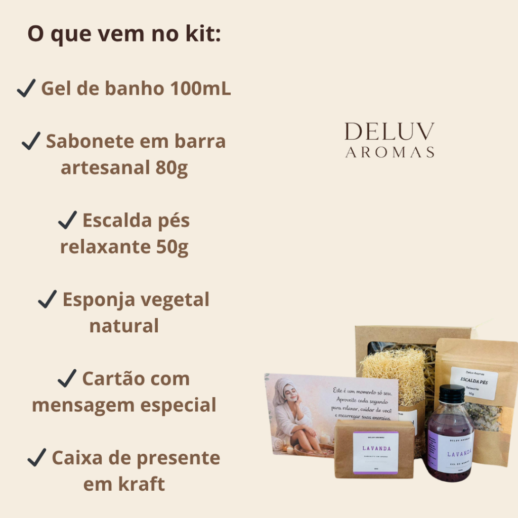 Kit Mini Spa Presente Feminino Morango Maracujá Lavanda Caixa Kraft gel de banho Autocuidado Dia das Mães