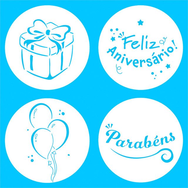| Kit Mini Stencils Parabéns - 7cm - 4 unidades - BlueStar - Rizzo este produto | R$ 28,90 | — | 5.0/5 | — |