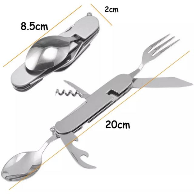 Kit Mini Talheres Dobráveis Camping Faca Garfo Colher Canivete Kit Mini Talheres Dobráveis Camping Faca Garfo Colher Canivete(1unidade) Medidas: apro - Fechada:8.5cm - Aberta: 20 cm Material: inox
