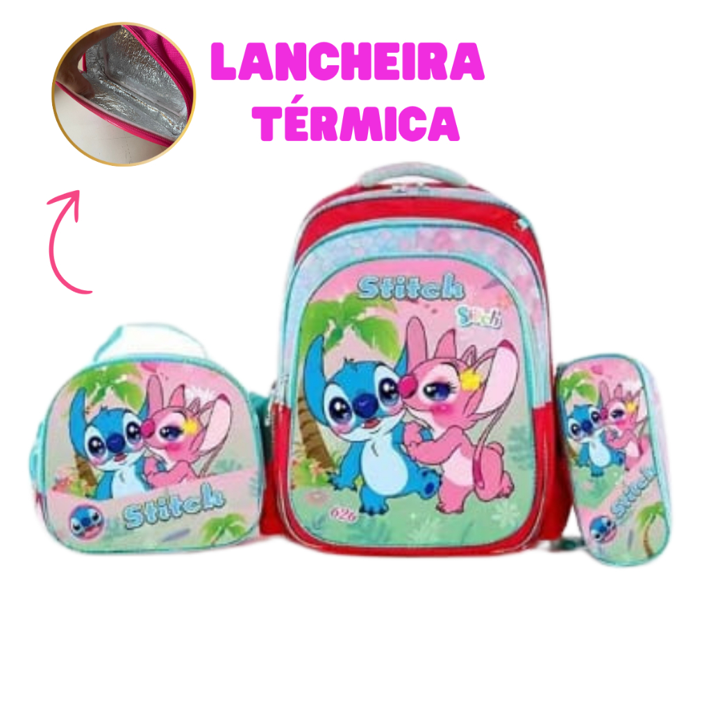 kit Mochila 3D + Lancheira + Estojo Lilo Stich Kuromi My Melody Infantil Rosa Bolsa Escolar Creche Passeio Menina