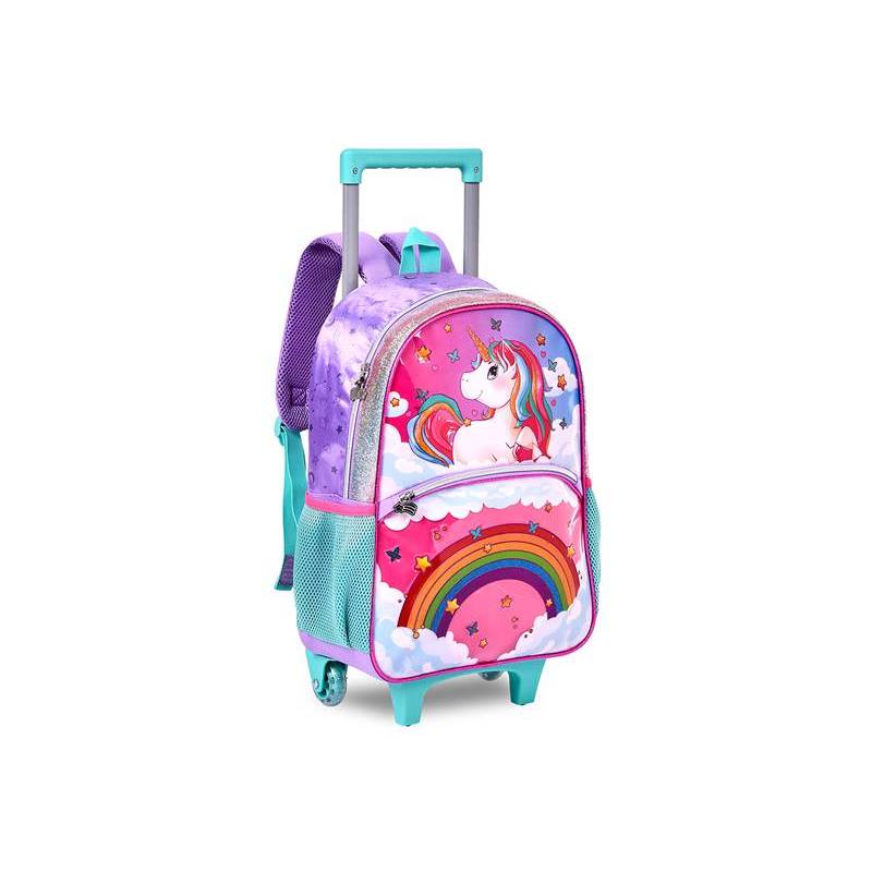 Kit Mochila Carrinho Estojo Lancheira Princesa Sweet Queen Sereia Brilho Escolar Infantil Rodinha