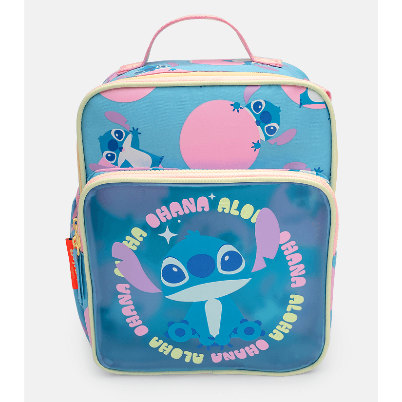 Kit Mochila com Rodinha Infantil Escolar, Lancheira Térmica e Estojo Stitch Puket