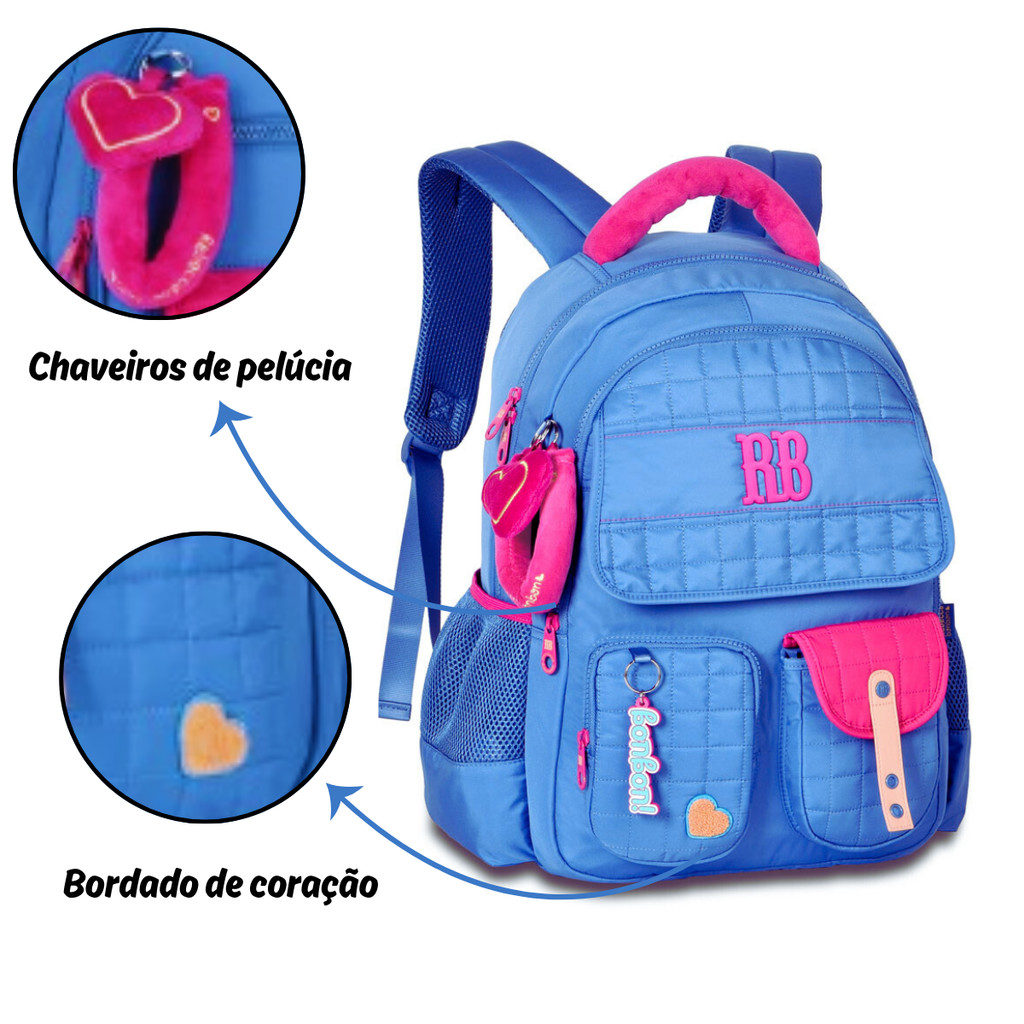 Kit Mochila de Costas Com Lancheira Rebecca Bonbon Plush Dreams -Clio Style Cor:Azul