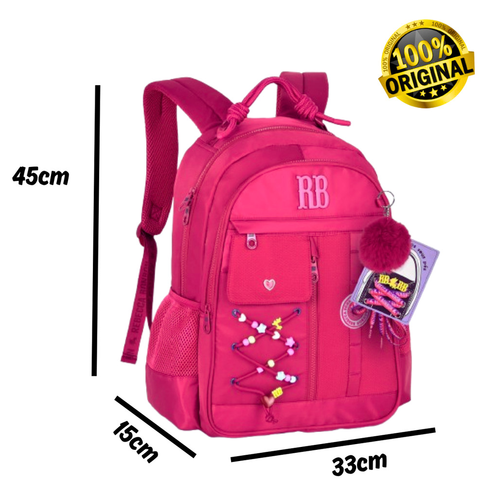 Kit Mochila de Costas com par de cadarços e Lancheira Rebecca Bonbon Beaded Fun Cor:Rosa