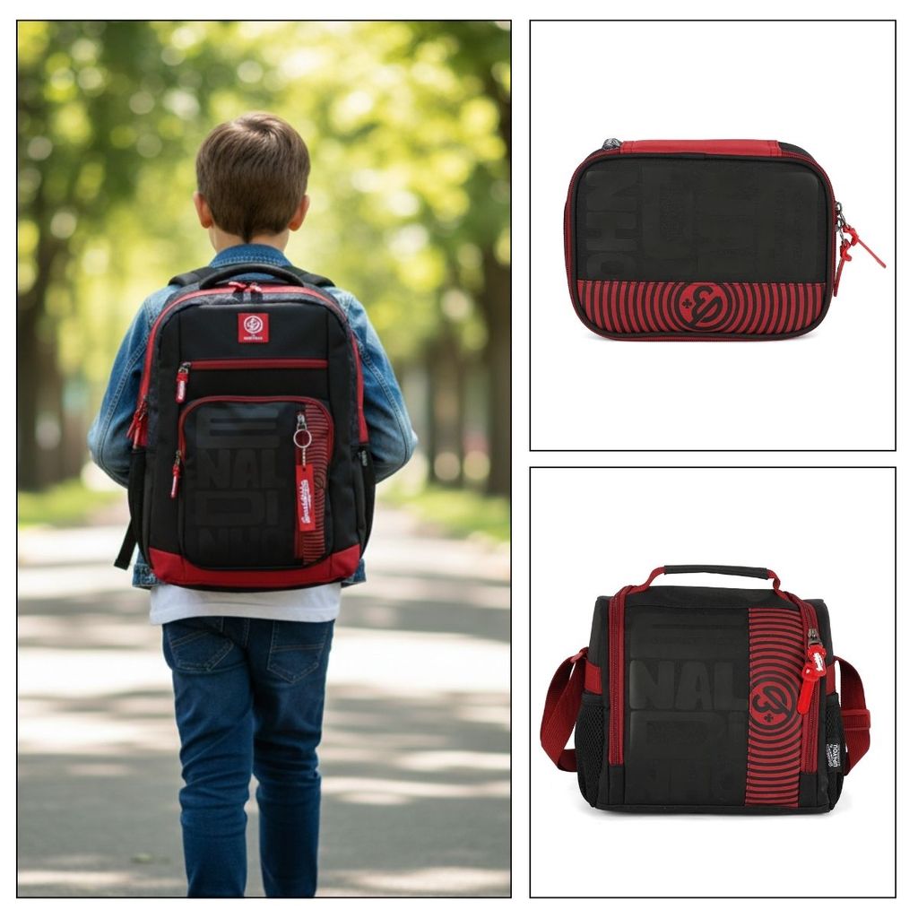 Kit Mochila de Costas Enaldinho Estojo Box Lancheira Térmica Informações da Mochila: - Alças de costas ajustáveis - Pega de Transporte Manual - Bolso Lateral Telado - Bolso Frontal Utilitário com estampa exclusiva - Zíper com Puxadores Personalizados - Estampa em PVC - Material: Poliéster e PVC - Medidas Aprox. da Mochila (AxLxP): 46cm x 32cm x 15cm - Capacidade Aprox. da Mochila (Litros): 19 litros - Polegadas da mochila: 16" - Medidas Aprox. do Estojo (AxLxP): 16cm x 22cm x 6cm - Capacidade Aprox. do Estojo (Litros): 2 Litros - Peso: 260g - Medidas Aprox. da Lancheira (AxLxP): 20cm x 23cm x 15cm - Capacidade Aprox. da Lancheira (Litros): 6 litros - Interior Térmico Todas as informações divulgadas são de responsabilidade exclusiva do fabricante. Garantia de 90 dias contra defeito de fabricação.