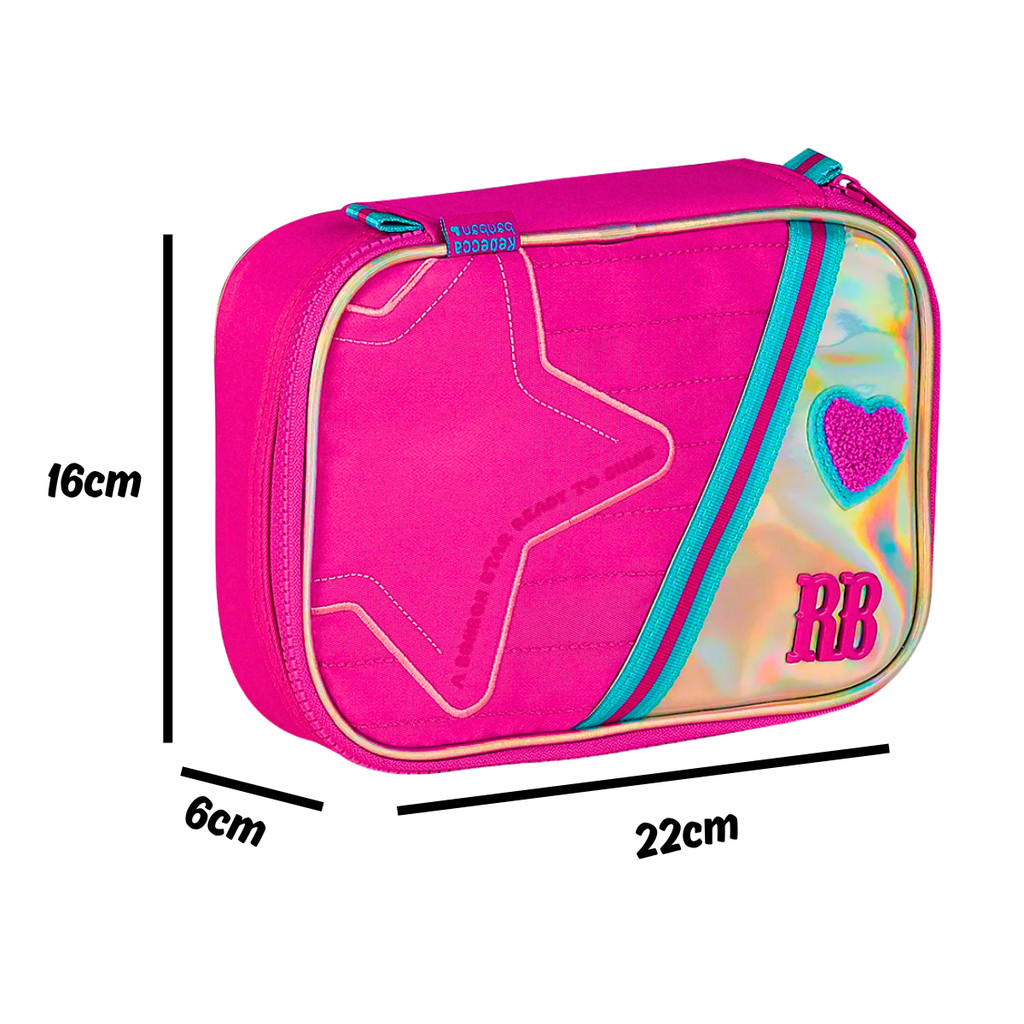 KIT MOCHILA DE COSTAS ,LANCHEIRA E ESTOJO REBECCA BONBON - CLIO STYLO Despacho Rápido: Pedidos feitos até as 11:00 hrs (SEG a SEX) serão enviados no mesmo dia! DETALHES E FUNCIONALIDADES: MOCHILA: Mochila de 17,5 polegadas (45x33x15cm) 5 bolsos com zipers e 1 Antifurto Bolsos laterias para garrafa Material Holográfico ESTOJO: Tamanho (22x16x6cm) Confeccionado em PVC Holografico com Bordado 01 Bolso e Divisorias para 36 pens LANCHEIRA: Tamanho (24x20x14cm) Confeccionado em PVC Holografico com Bordado 02 bolsos Produtos em PVC holográfico com bordado de estrela, patches no painel frontal e etiqueta de borracha. Acompanham chaveiro pompom com orelhinhas, cadarço e estrela de acrílico. Mochila de Costas Holo Shine: Modelo de 17,5 polegadas (45x33x15 cm) com alça carona , bolso antifurto e patch atoalhado com glitter.Ref: RB27017. Estojo Box Holo Shine (36 Lápis): Estojo com capacidade para 36 lápis, medindo 22x16x6cm.Ref: RB27019 Lancheira Térmica Holo Shine: Lancheira de 8 polegadas (20x24x14cm), com PVC holográfico e bordado de estrela.Ref: RB27018. PRODUTO AUTÊNTICO DA MARCA CLIO STYLO LINHA: REBECCA BONBON