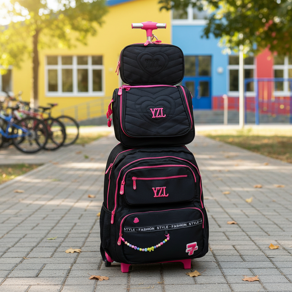 🌟 Seja Bem-vindo(a) ao BAZAR309! 🌟 Com vasta experiência e compromisso com a satisfação total de nossos clientes, estamos aqui para oferecer atendimento exclusivo e produtos de alta qualidade, pensados para tornar o seu dia a dia ainda mais prático e estiloso. ✨ ____________________ O Que Esperar do Novo Kit? Beleza, qualidade e bom gosto! 😍 Trazendo novas cores, acabamento impecável e, claro, muito charme para você! ✨ ____________________ 🎒 Mochila com Rodinhas YZL - A Perfeição para Seu Estilo! Prática e superestilosa, a mochila com rodinhas YZL é a escolha perfeita para te acompanhar em qualquer ocasião! Ideal para a escola, faculdade, viagens ou até para o clube, ela combina funcionalidade e design moderno. Características: 🧳 Rodinhas para facilitar o transporte 💻 Compartimento para Notebook e espaço extra para itens essenciais 🎒 Alças de mão e costas acolchoadas e ajustáveis para máximo conforto 🔒 Fechamento em zíper personalizado 🎀 Acompanha um chaveiro fofo 🛒 Carrinho com regulagem de altura e botão para travamento Material: Poliéster Tamanho Aproximado: Altura: 49cm (sem a haste levantada) Largura: 33cm Profundidade: 20cm Altura total com haste puxada: 75cm ____________________ 🍱 Lancheira Térmica YZL - Para Estar Sempre Fashion e Organizada! A lancheira térmica é perfeita para quem adora um look fashion e não abre mão da praticidade. 🧑🍳💕 Características: ✨ Puxadores personalizados que dão um toque especial 👜 Duas alças para transporte confortável 🌡️ Revestimento interno térmico para manter seus alimentos fresquinhos Medidas Aproximadas: Altura: 21cm Largura: 25cm Comprimento: 13cm ____________________ 🖊️ Estojo Fashion YZL - Organização e Estilo em Um Só Lugar! Com um design lindo e supermoderno, o estojo é ideal para guardar seus materiais escolares ou até maquiagens com muito charme e praticidade! 💅✨ Características: 📚 Bolso duplo para melhor organização 🗂️ Bolso interno para separar seus itens com facilidade 🔒 Fecho reforçado com costura de alta qualidade Medidas Aproximadas: Altura: 21cm Comprimento: 25cm Largura: 13cm ____________________ 🌟 Por que você vai amar a linha YZL: Alta qualidade e durabilidade em cada detalhe Design moderno e superprático para o seu dia a dia Produtos perfeitos para a escola, faculdade, viagens e muito mais! 💖 Não perca a chance de garantir o seu kit YZL!