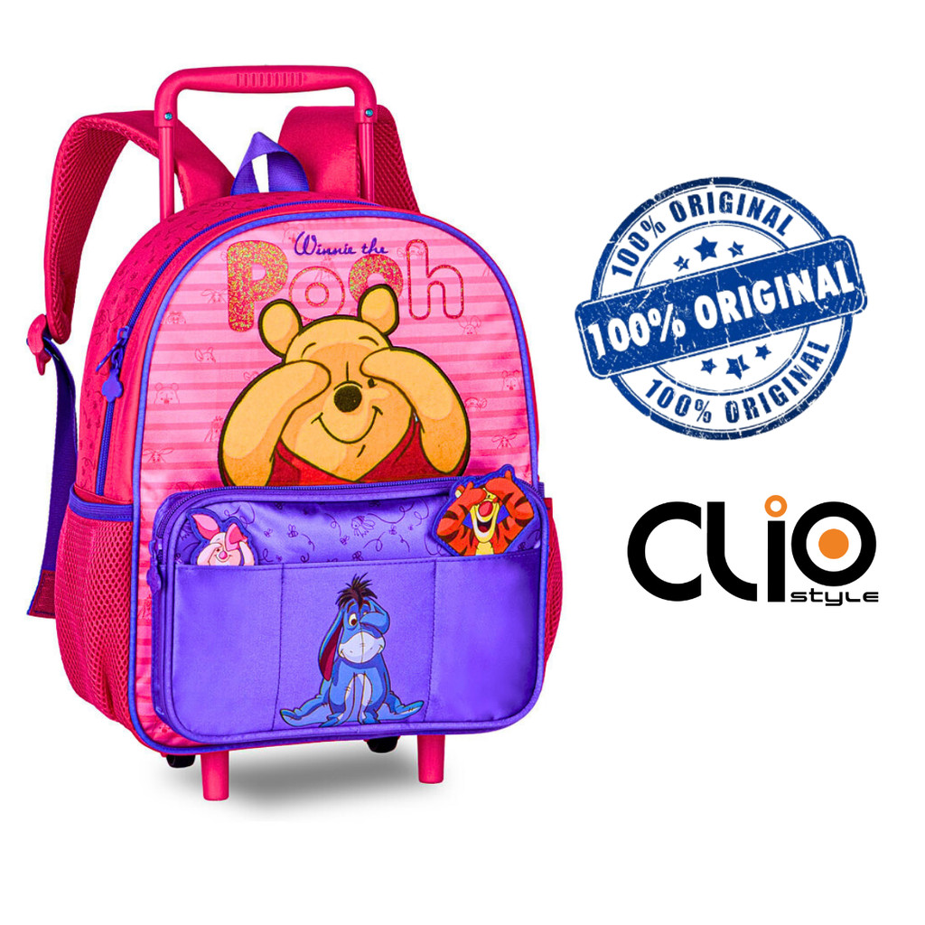 KIT MOCHILA DE RODINHAS COM LANCHEIRA URSINHO POOH - CLIO STYLE Despacho Rápido: Pedidos feitos até as 11:00 hrs (SEG a SEX) serão enviados no mesmo dia! DETALHES E FUNCIONALIDADES: MOCHILA: Tamanho 33x27x12cm. Confecionado em poliéster. 02 Bolsos e mais 02 Laterais telado para Garrafas. Linha interativa (pique-esconde com os personagens) Mochila de Rodinhas com Alças estofadas e alcochoadas. Garantia pelo fabricante Clio Style LANCHEIRA: Tamanho 23x20x11cm Confeccionado em Poliéster Lancheira termica , espaçosa com alça para uso de lado. GARANTIA DO FABRICANTE CLIO LINHA: DISNEY
