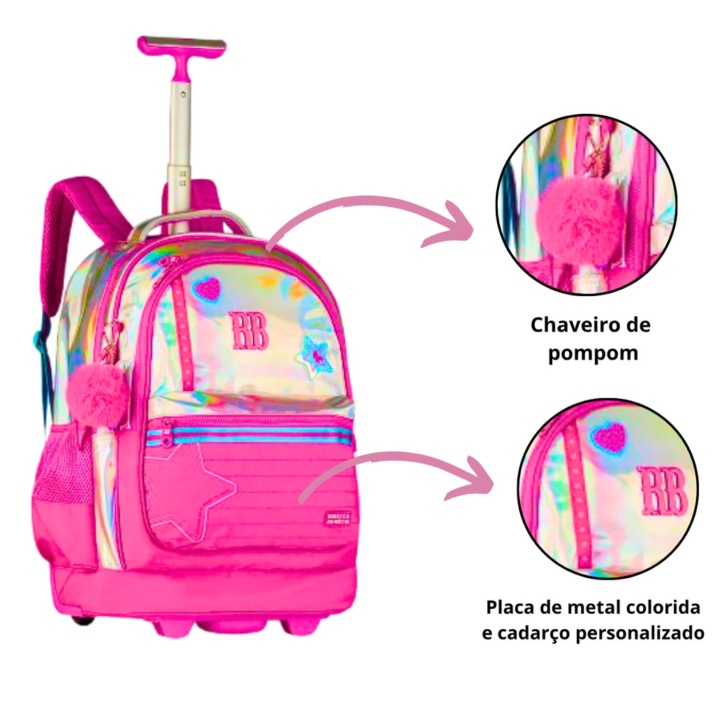 Kit Mochila de Rodinhas e Estojo Rebecca Bonbon Holo Shine