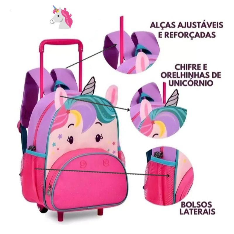 Kit Mochila De Rodinhas Infantil P/ Creche Criança Pets Resistente Ounicórnio 24512