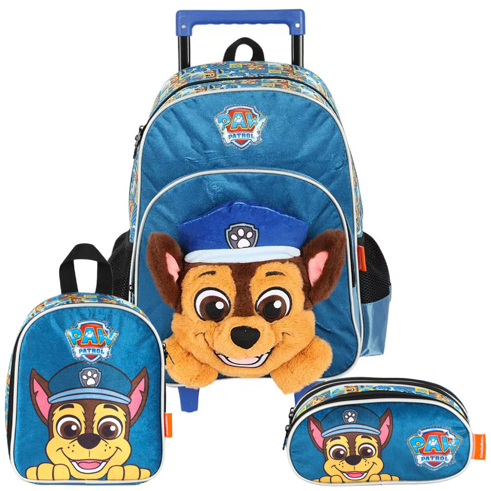 Kit Mochila De Rodinhas Lancheira Estojo Paw Patrol Pelúcia