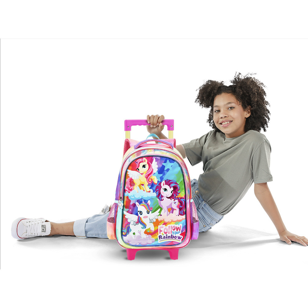 Kit Mochila De Rodinhas Lancheira Estojo Unicórnio Rainbow