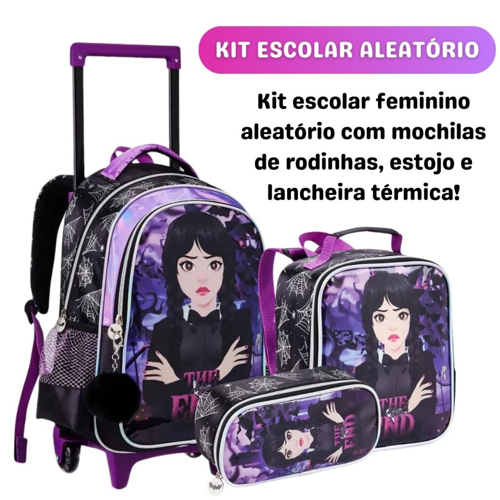 Kit Mochila Escolar 2 Em 1 Infantil de Rodinhas Menino Menina Estampas em 3D Resistente