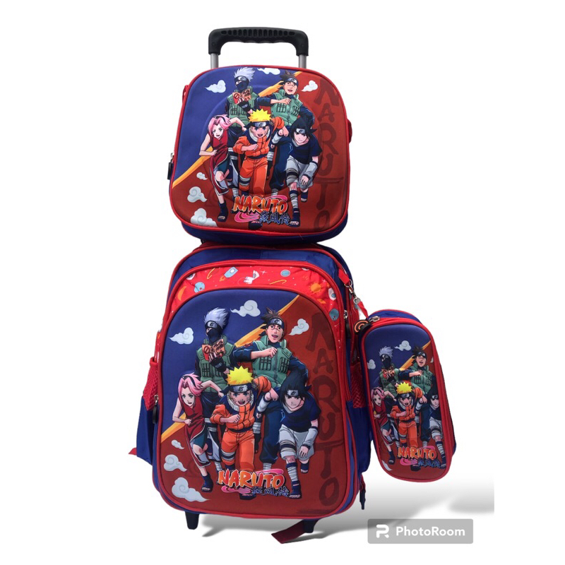 kit mochila escolar 3D Naruto com rodinhas lancheira térmica e estojo