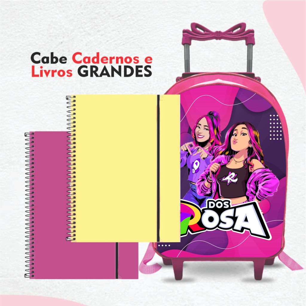 Kit mochila escolar dos rosas com lancheira e Estojo - com Rodinhas - Menina-Feminino