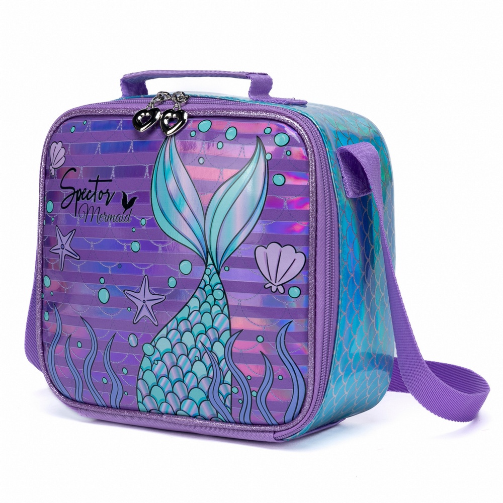 Kit Mochila Escolar Feminina Reforçada Rodinhas Sereia Estojo Lancheira