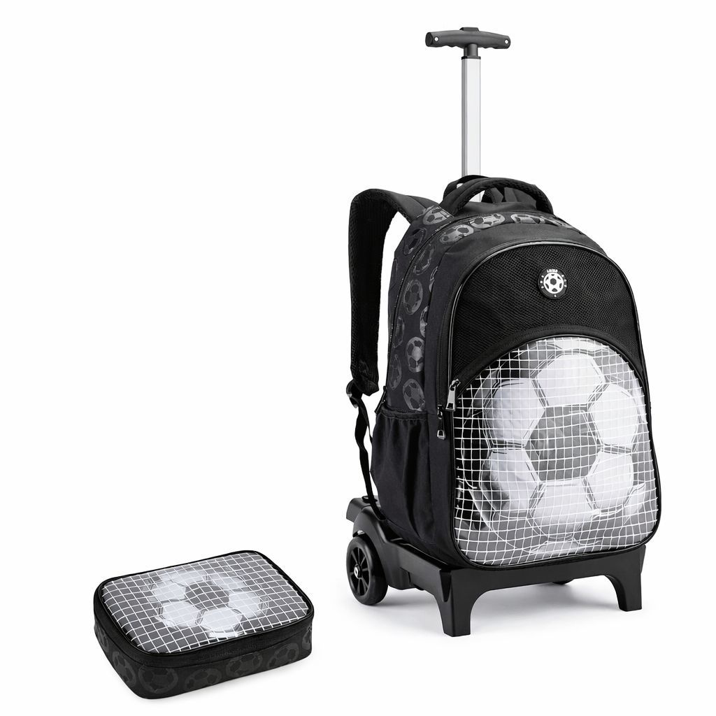 Kit Mochila Escolar Masculino Futebol ,Mochila com carrinho Juvenil + Estojo box