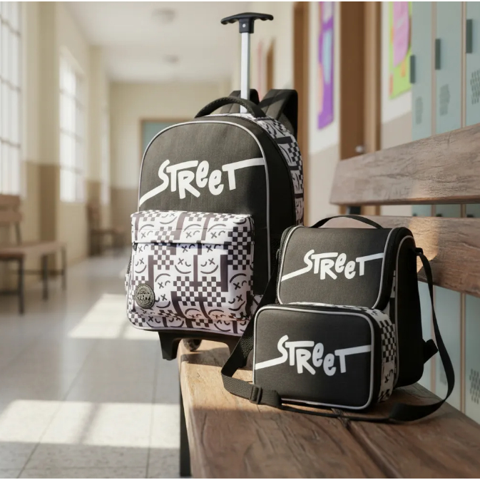 Kit Mochila Escolar Video Game Skate Trolley Juvenil Infantil Carrinho Reforçado