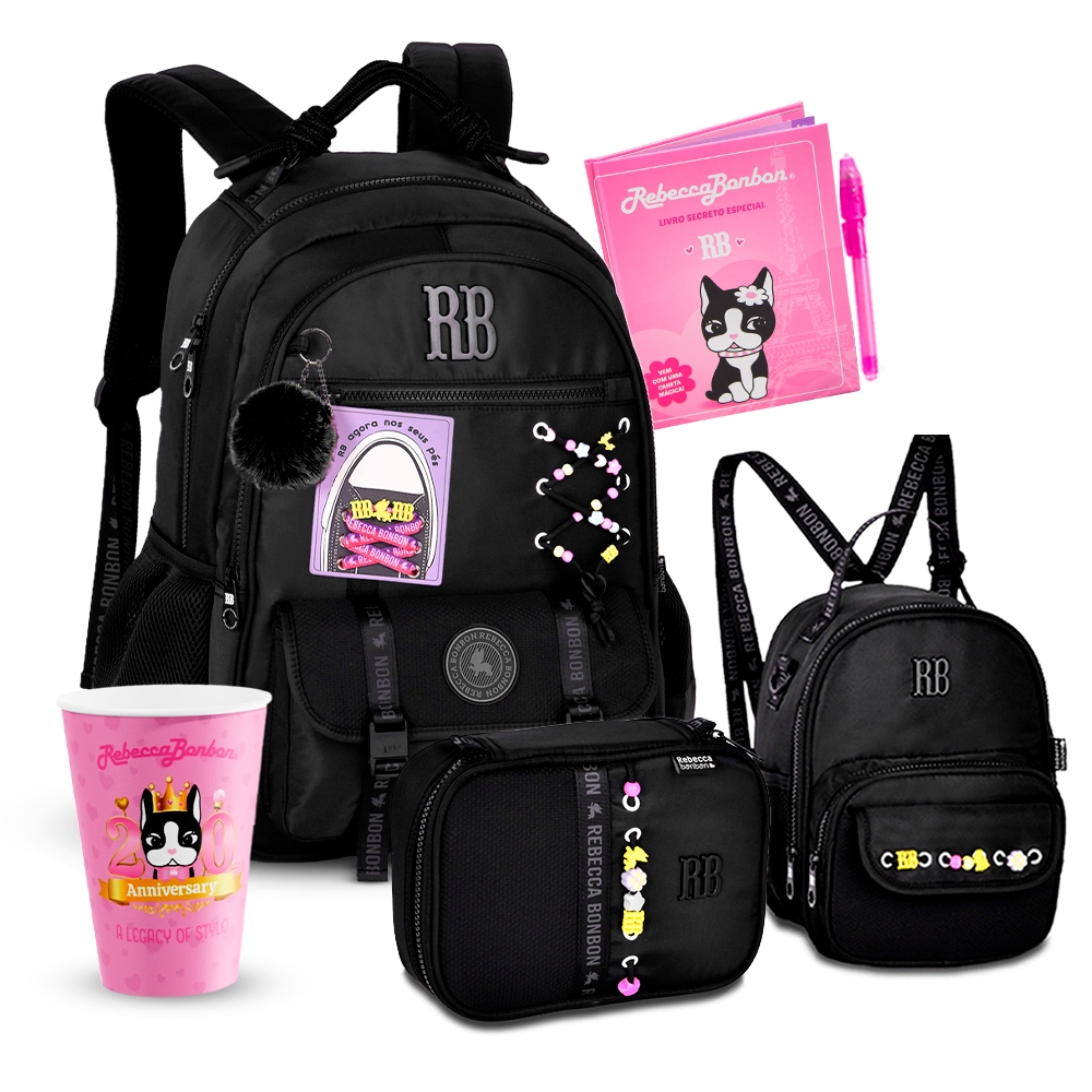 Kit Mochila Exclusiva Estojo Lancheira RB Rebecca Bonbon Feminina Coleção 2026 Teen Nova