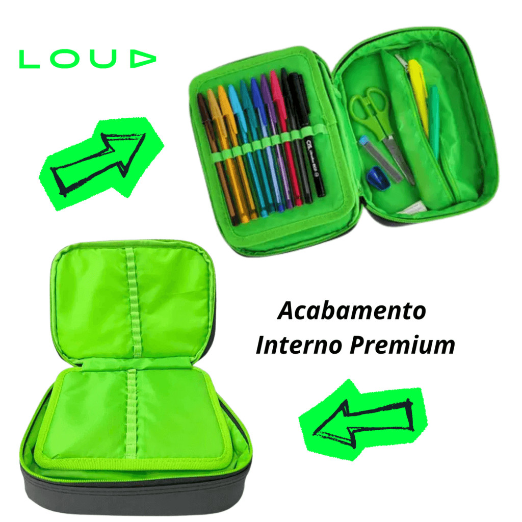 Kit Mochila Gamer Com Estojo E Garrafa Térmica Loud Oficial Make It Louder Licenciada Gamer Nova Coleção Kit Mochila + Estojo + Garrafa Térmica LOUD – Nova Coleção Oficial | Edição Limitada! Toda a atitude, ousadia e identidade da LOUD agora no seu dia a dia escolar! Seja diferente, seja barulhento, seja LOUD. A coleção oficial traz design exclusivo, materiais de alta qualidade e estilo incomparável para quem quer se destacar de verdade. O Kit LOUD inclui:01 Mochila LOUD com compartimento para notebook01 Estojo LOUD com 36 elásticos internos01 Garrafa Térmica LOUD personalizada MOCHILA LOUD – FUNCIONALIDADE E ESTILO URBANO Confeccionada em lona resistente com detalhes em material soft Compartimento acolchoado para notebook Bolso frontal e bolsos laterais Chaveiro e puxadores personalizados LOUD Dimensões: 44cm (A) x 33cm (L) x 14cm (P) ESTOJO LOUD – ORGANIZAÇÃO NA MEDIDA CERTA Lona resistente com acabamento soft 36 elásticos internos para canetas, lápis e acessórios Zíper com puxador personalizado LOUD Dimensões: 22cm (C) x 14cm (L) x 6cm (A) GARRAFA TÉRMICA LOUD – EDIÇÃO ESPECIAL Acompanha o kit kit mochila LOUD, mochila escolar com estojo, mochila gamer LOUD, garrafa térmica LOUD, coleção nova LOUD, mochila com compartimento notebook, estojo grande com elásticos, kit volta às aulas LOUD
