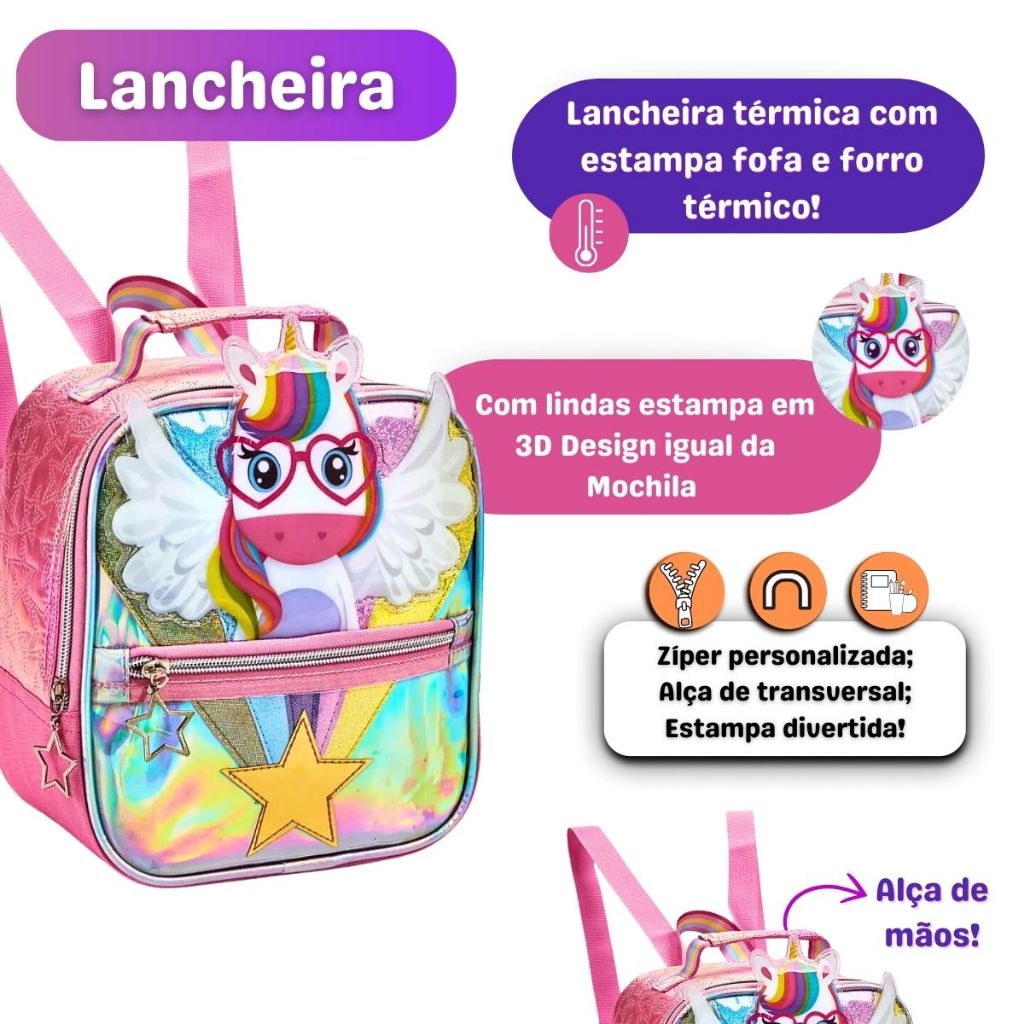 Kit Mochila Infantil 2 Em 1 Carrinho Removível Unicórnio Prática Resistente Estampa 3D