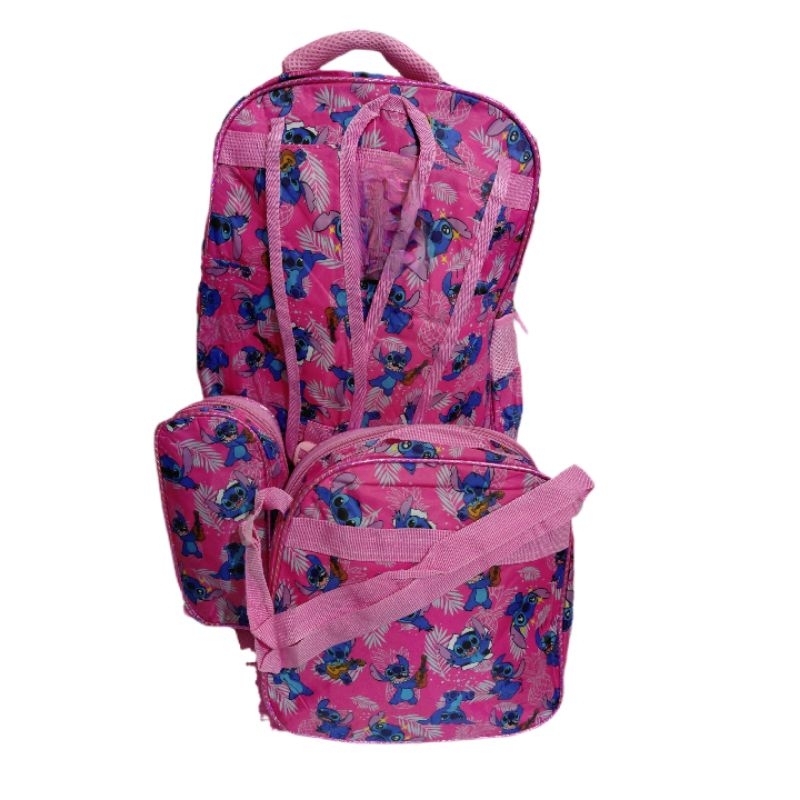 Kit mochila infantil de costas Sonic ou Stitch e Angel 3D alto relevo com estojo e lancheira térmica