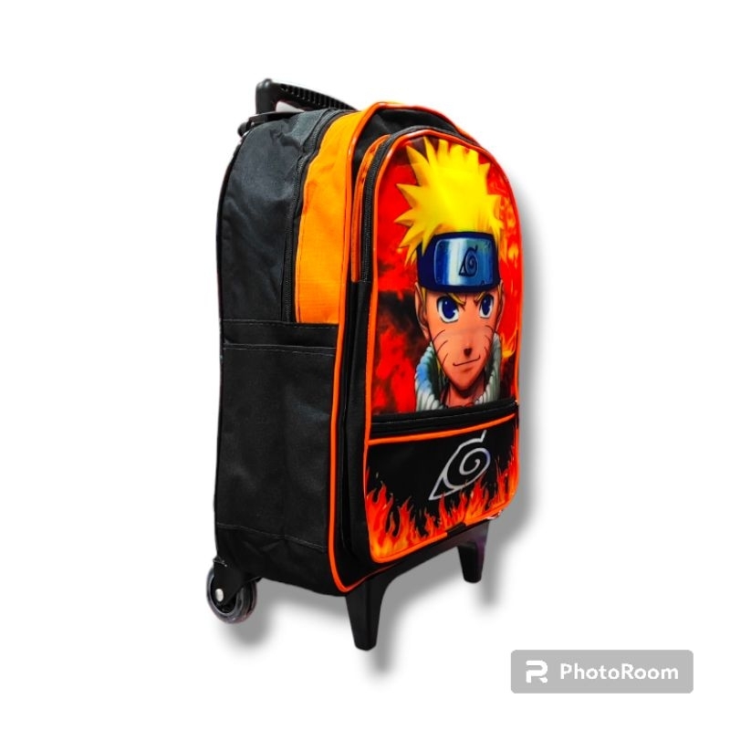 Kit Mochila Infantil Escolar com rodinhas de silicone do menino Naruto + lancheira + estojo