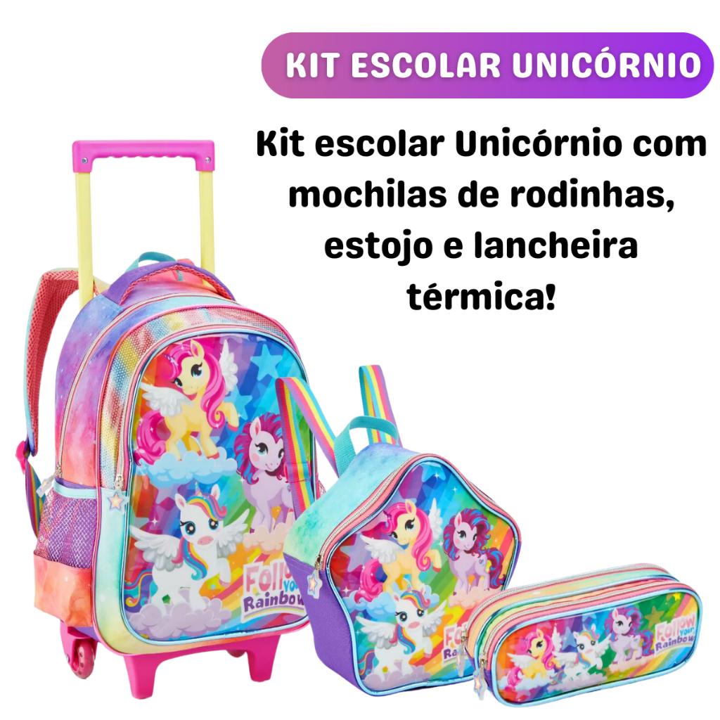 Kit Mochila Infantil Unicórnio Menina Linda Resistente Prática 2 Em 1 Multifuncional