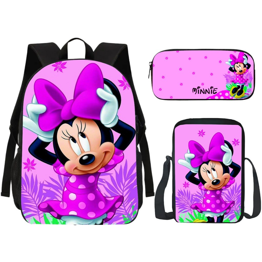 Kit Mochila Lancheira Estojo Minnie Mouse Rosa Volta Às Aulas