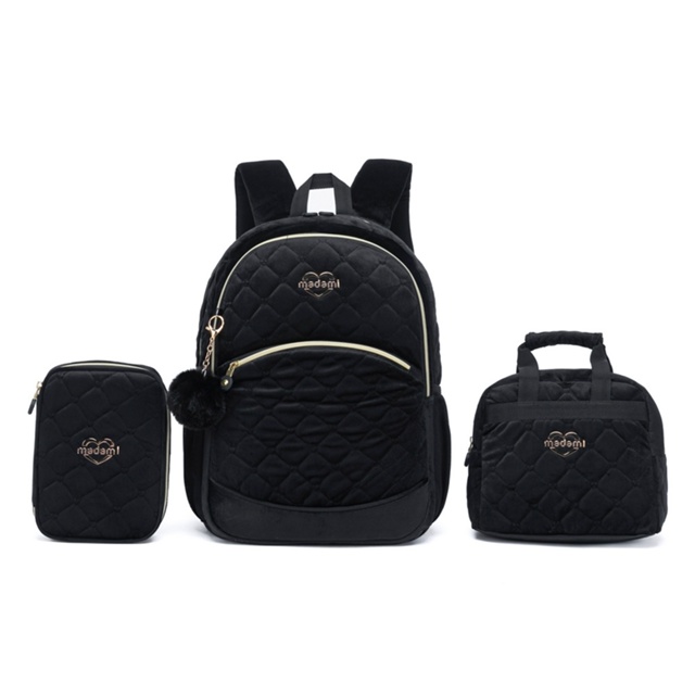 A Madami é uma marca inspirada na cultura da mulher e no empoderamento feminino, com design simples, divertido e acabamento de alta qualidade. Características: • Poliéster de alta resistência • Alças ergonômicas e reguláveis • Alça de mão reforçada • Bolsos laterais | Frontais • Divisórias internas • Logo, puxadores e forro personalizados • Bolsos laterais (possibilitando armazenar garrafa de água) • Haste retrátil em metal Especificações Mochila: • Material: Poliéster • Tamanho (A x L x P):50x32x20 cm • Peso: 1,100 kg | Capacidade:32L • SKU: MD2127Z Especificações estojo: Medidas (AxLxP):23x17x6cm Peso:140g Capacidade:2lL Especificações lancheira: Medidas (AxLxP): 26x22x13cm Peso: 250g Capacidade: 7,5l Envio: Seu pedido será enviado pelas transportadoras parceiras da Shopee ou pelos Correios. O rastreamento fica disponível no aplicativo, e os prazos variam conforme sua localização. Conservação: Limpeza com pano úmido, sem produtos químicos. Não expor ao sol. Garantia: 3 meses para defeitos de fabricação Pronta entrega | Nota Fiscal | Produto original
