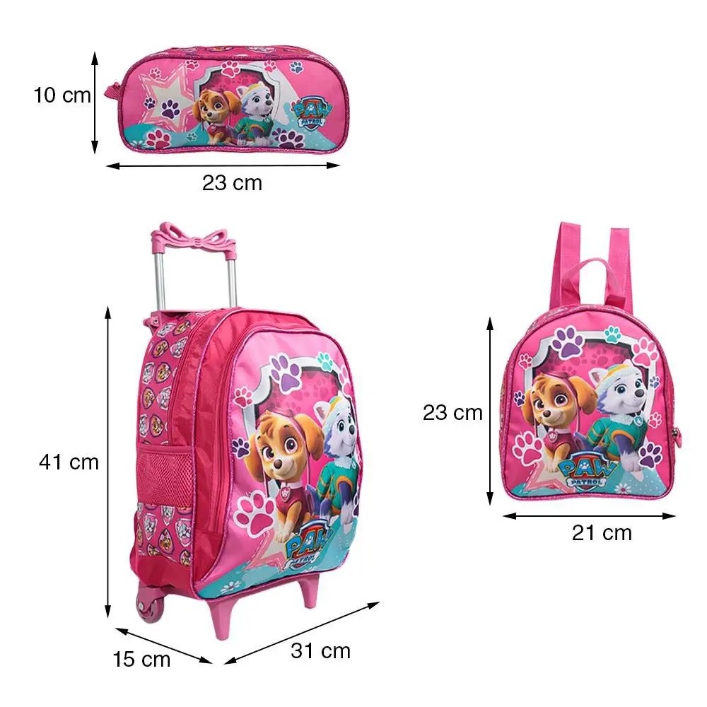Kit Mochila Patrulha Canina Skye com Rodinhas Lancheira Térmica e Estojo