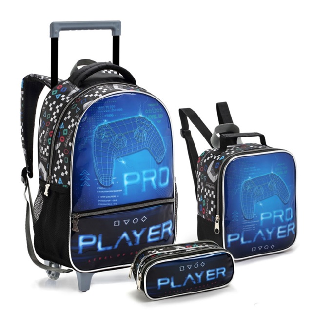 Kit Mochila Rodinhas Infantil Menino Game Pro Player Lançamento
