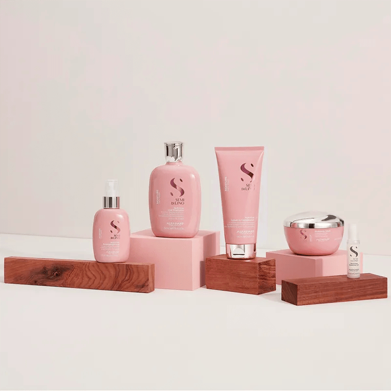 O Kit Contém: 1 – Shampoo Semi Di Lino Moisture Nutritive Low 250ml – Alfaparf 1 – Leave-in Condicionador SDL Moisture Nutritive 200ml – Alfaparf 1 – Máscara Semi Di Lino Moisture Nutritive 200ml – Alfaparf 1 – Ampola Semi Di Lino Sublime Essential Oil 13ml Alfaparf Kit Semí Dí Lino Moisture Nutritive Low Alfaparf Desenvolvido para Nutrição, com tecnologia Low Poo, o Kit Profissional Semi Di Lino Moisture da Alfaparf é livre de sulfatos, parafinas e óleos minerais, proporcionando uma limpeza delicada da fibra capilar. A linha Semi di Lino Moisture combina ativo biotecnológico, extrato de linhaça, filtro UV, antioxidantes e nutri-açúcares de mel, protegendo contra poluição, evitando o desgaste diário, preservando a cor, prevenindo o envelhecimento, dando luminosidade e hidratação. Além de limpar, hidratar e nutrir, dá vitalidade e fortalece os cabelos, deixando-os macios, brilhantes e luminosos. Shampoo Semi Di Lino Moisture Nutritive Low 250ml – Alfaparf Sobre o Produto: Indicados para cabelos secos ou ressecados.Limpeza e nutrição completa sem pesar, para uma suavidade e uma sedosidade características dos cabelos saudáveis. Delicado, sem sulfatos. Modo de usar: Distribuir nos cabelos úmidos e emulsionar. enxaguar com cuidado. Repetir se necessário Leave-in Condicionador SDL Moisture Nutritive 200ml – Alfaparf Sobre o Produto: Condicionador sem enxágue para cabelos secos: suaviza a fibra capilar e facilita o seu controle sem pesar, oferecendo uma luminosidade extrema. Modo de usar: Aplicar como último passo de tratamento nos cabelos úmidos. Distribuir uniformemente no comprimento e pontas e a seguir proceder com a estilização. Máscara Semi Di Lino Moisture Nutritive 200ml – Alfaparf Sobre o Produto: Indicados para cabelos secos e/ou ressecados.Efeito anti-ressecamento das raízes às pontas. Melhora instantaneamente a qualidade dos cabelos, que se tornam suaves e facilmente desembaraçáveis. Modo de usar: Aplicar após o shampoo. Deixar agir durante 5 minutos. Enxaguar com cuidado. Ampola Semi Di Lino Sublime Essential Oil 13ml Alfaparf Sobre o produto: Tratamento de brilho, para todos os tipos de cabelo. Reduz a textura aspera do fio, enriquece a fibra capilar e deixa os cabelos suaves. Os resultados são na primeira aplicação. Cabelos luminosos e saudáveis. Modo de Usar: Após o shampoo, aplique um flaconete nos cabelos úmidos. Deixe agir por alguns minutos, e enxágue cuidadosamente.