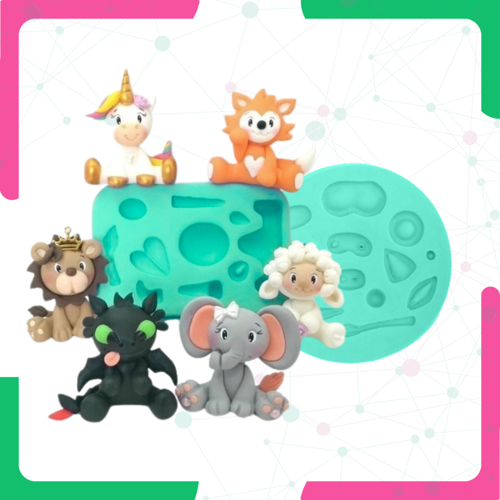 Kit Molde de Silicone para Biscuit Topo Aplique Animais Fofos