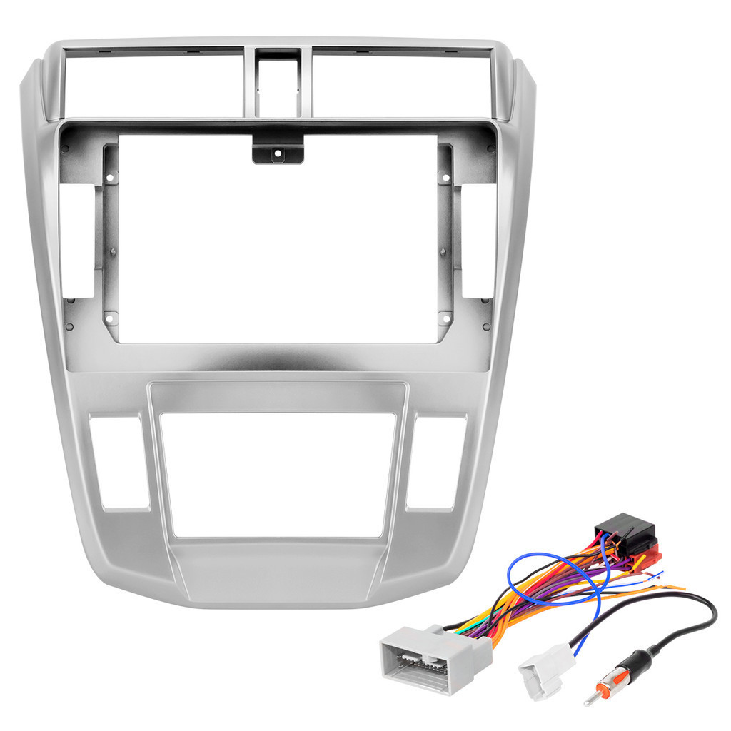 Kit Moldura Painel 10 Pol City Ar Digital 2008 2009 2010 2011 2012 2013 2 Din Prata Chicote Som Plug Antena