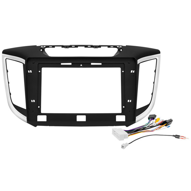 Kit Moldura Painel 10 Pol Creta 2016 2017 2018 2019 2020 2021 2 Din Preto Chicote Som Plug Antena Acabamento Prata