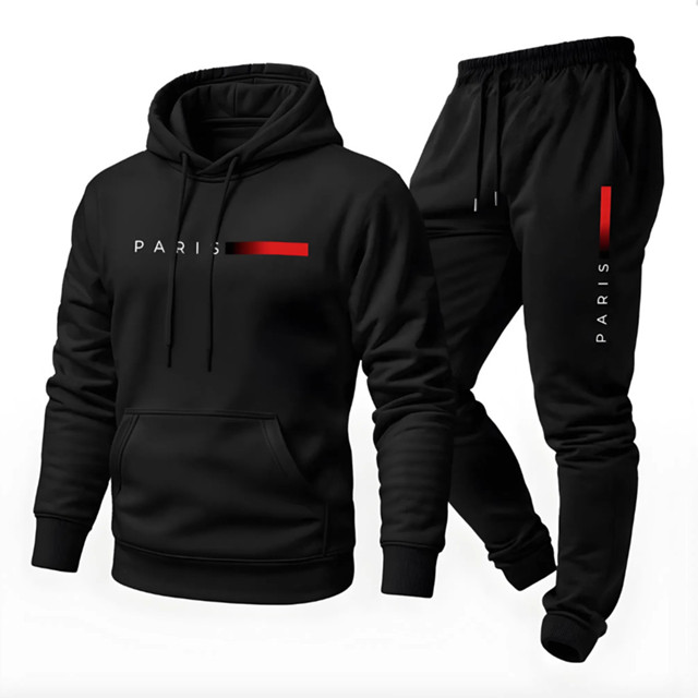 Kit Moletom Conjunto Canguru + Calça Flanelado Estampa Paris Unissex Com Capuz Algodão Promoção